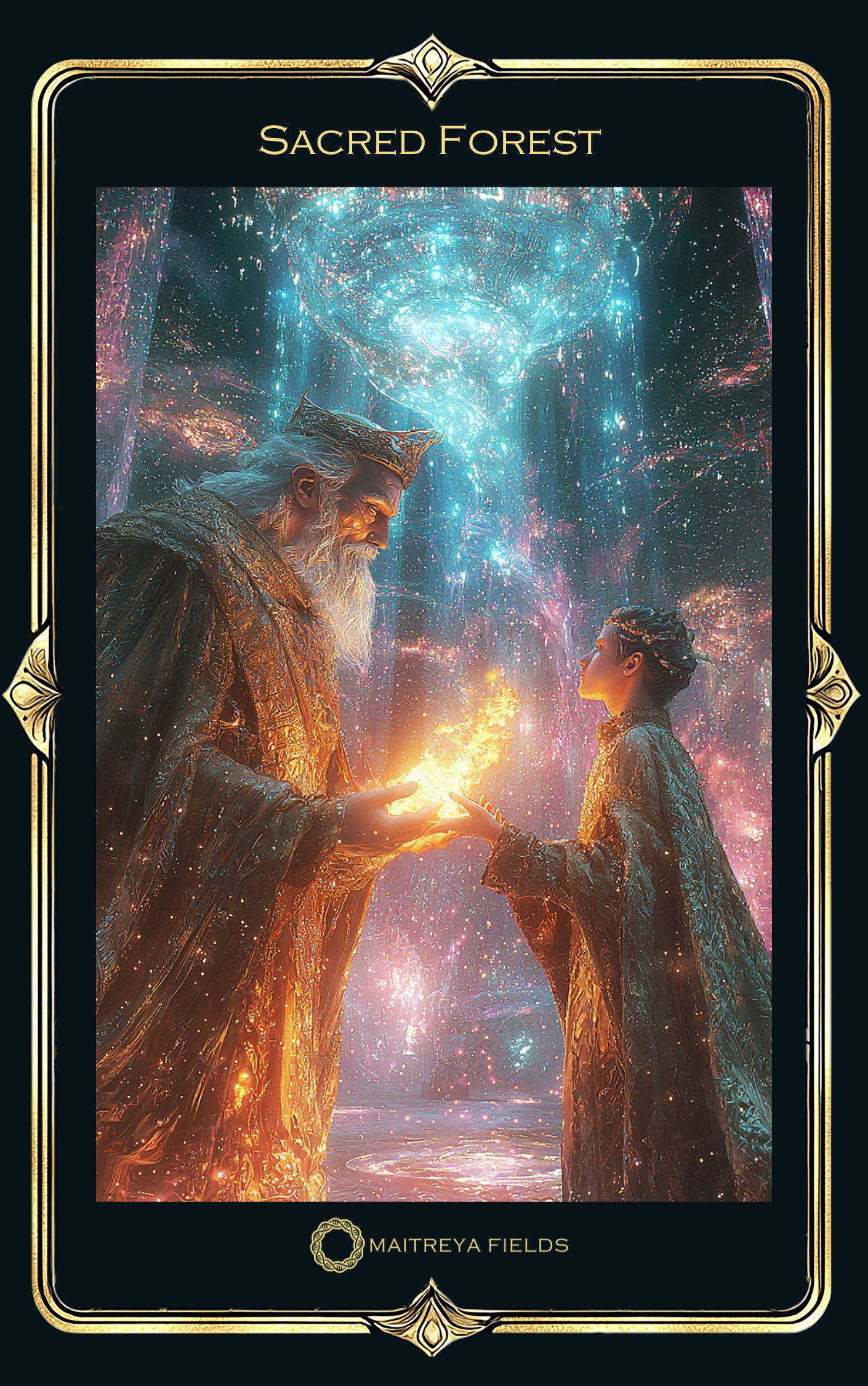 Die Gestalt legt eine Hand über dein Herz. „Deine Wurzel-, Solarplexus- und Herzchakren sind jetzt ausgerichtet und aktiviert. Mit diesem Gleichgewicht wirst du mit Selbstvertrauen, Optimismus und einem klaren Sinn für Zweck voranschreiten.“