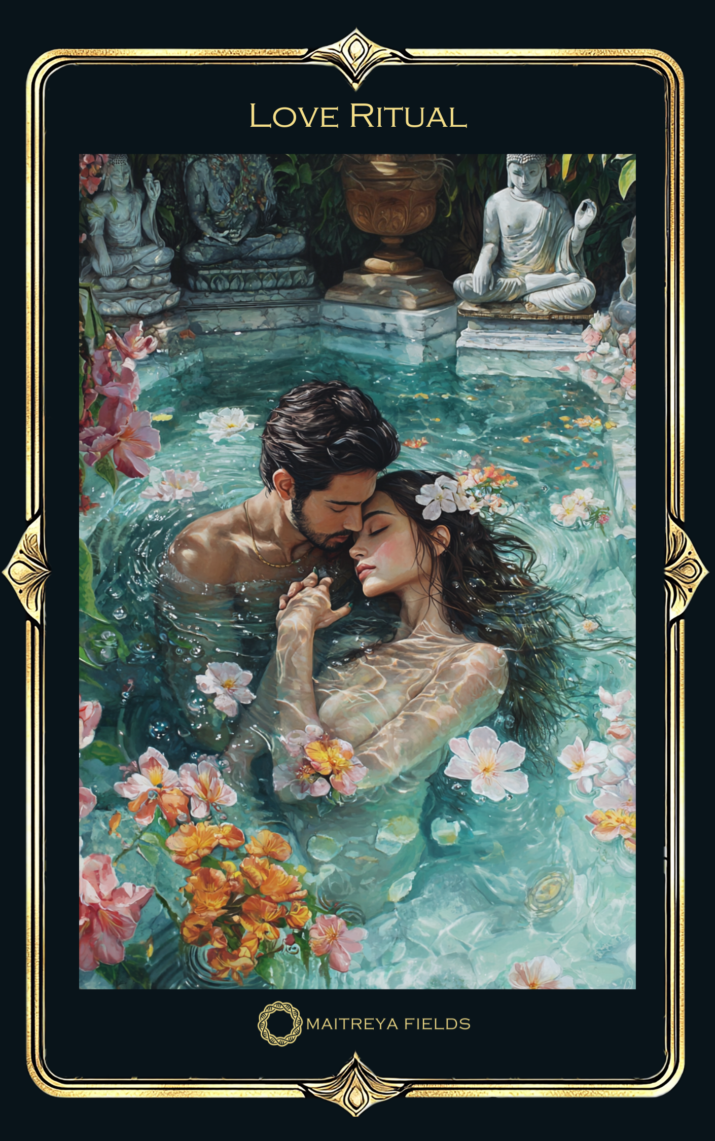 You are being called to awaken to a deeper level of awareness in your relationships, much like the couple who discovered the enchanted garden and bathed in the wisdom of the divine. This card signifies a pivotal moment to become mindful of how you relate to your loved ones, especially your partner. It invites you to recognize and release any unconscious patterns or ancestral influences that may be affecting your connection.