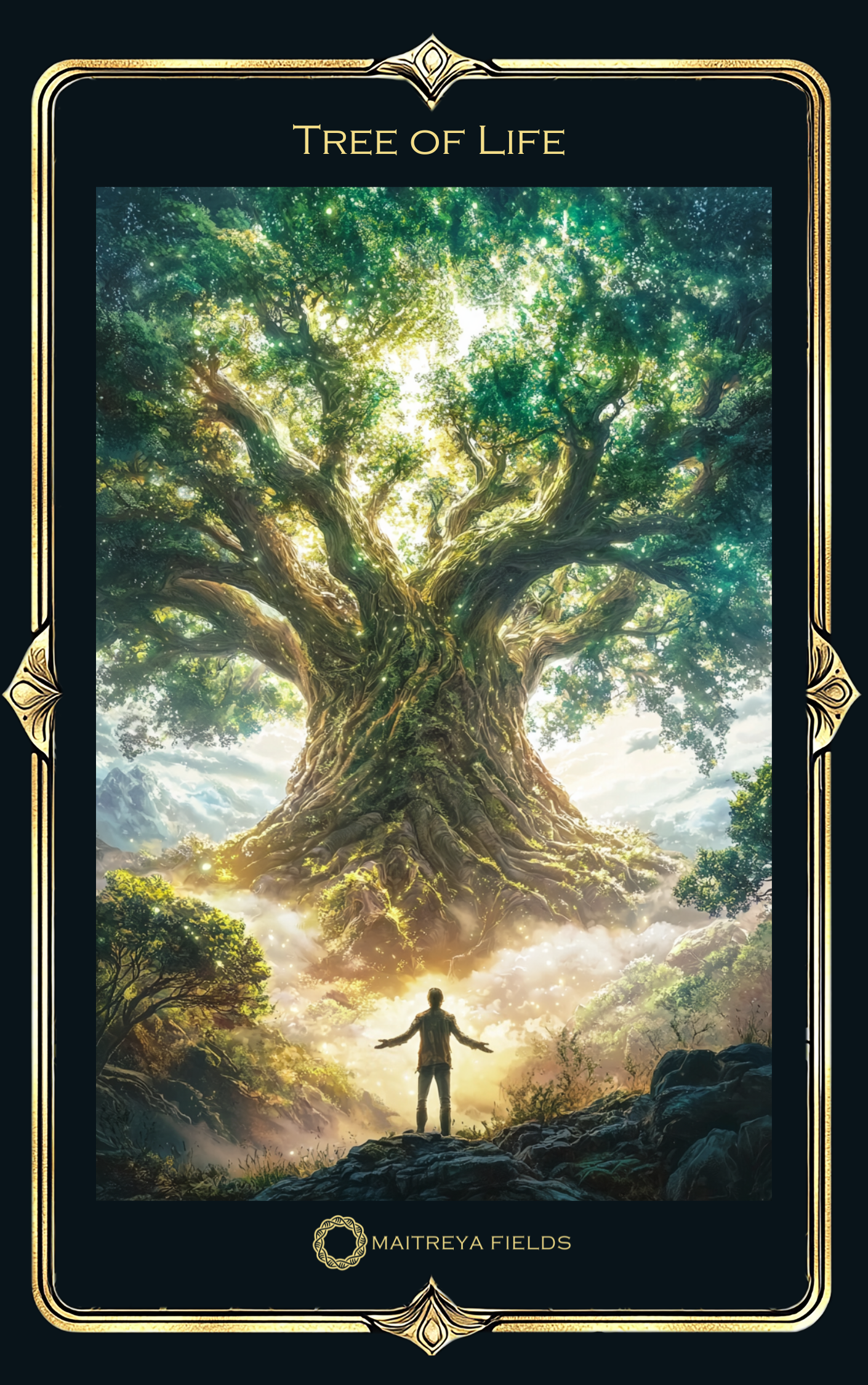 やがて、やさしい変化が訪れます。役目を終えた葉は静かに地面へと舞い落ち、空へと向かっていたエネルギーは内側に満ち、穏やかで温かな安定感をもたらします。枝はゆっくりと引き、幹は柔らかくなり、根は大地から離れていきます。あなたは再び人間の姿へと戻り、森の中に立ちますが、その内側には生命の樹の強さとしなやかさが息づいています。