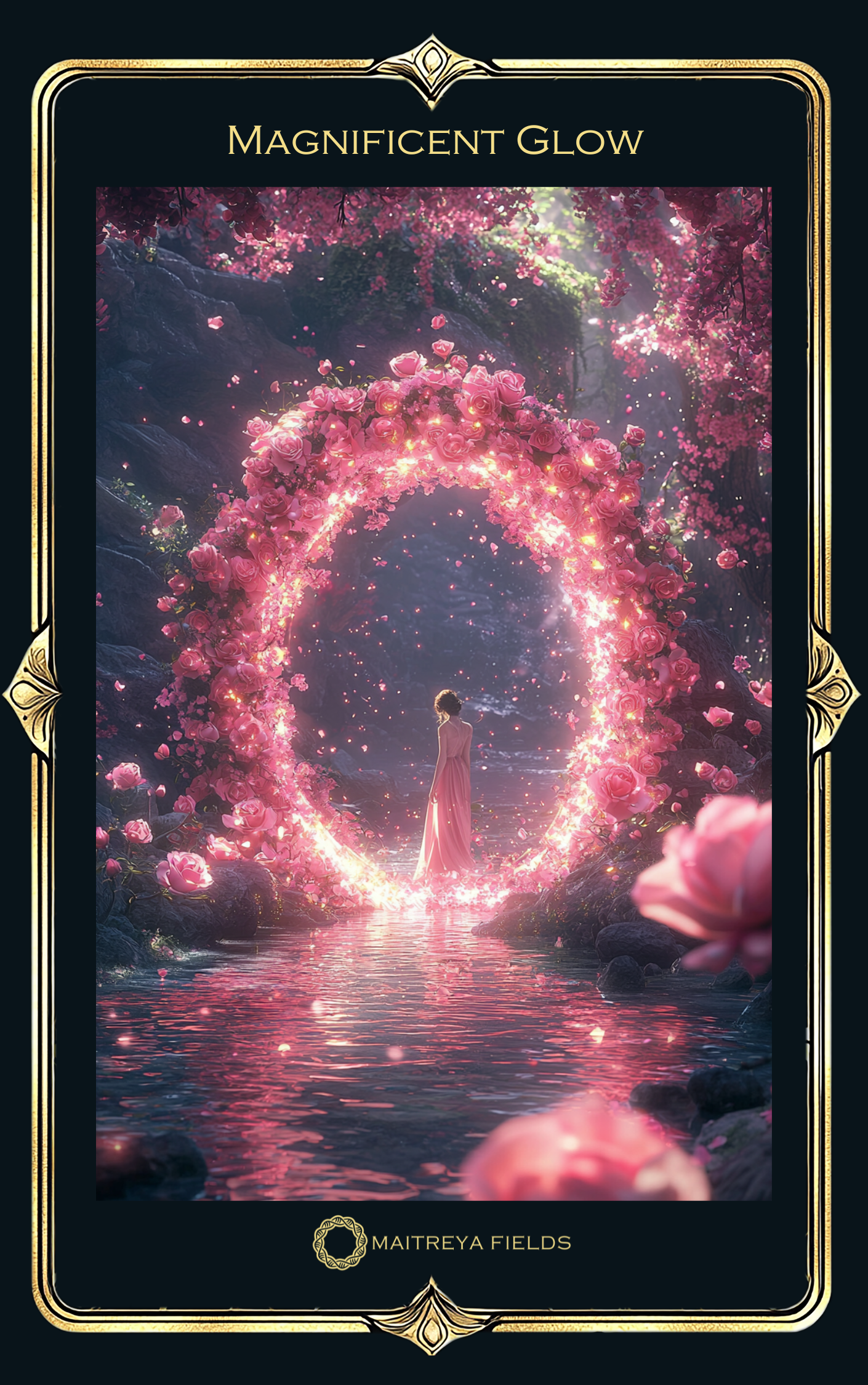You are on the verge of a beautiful transformation, much like the traveler who stepped into the Enchanted Rose Garden and emerged radiating a Magnificent Glow. This card signifies a blossoming of self-confidence and the shedding of fears that have held you back. The roses represent your unfolding potential and the unique beauty that lies within you.